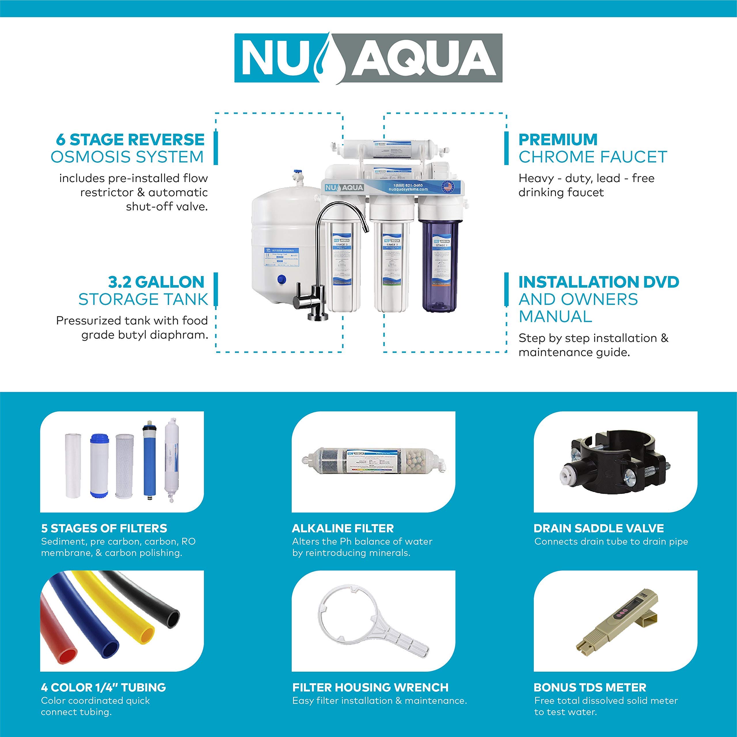 Nu Aqua Platinum Series 100gpd 6 Stage Undersink Reverse Osmosis Ultimate Alkaline Mineral Ph Balanced Drinking Water Filter System Free Bonus Ppm Meter And Installation Dvd Amazon Com