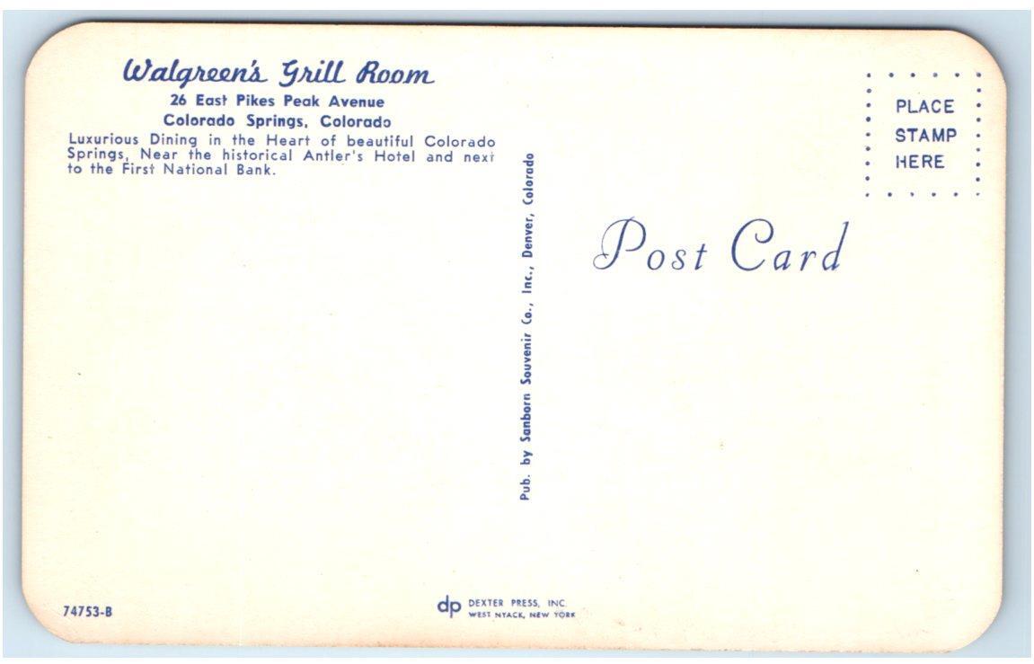 Colorado Springs Co Colorado Roadside Walgreen S Grill Room C1950s Postcard Ebay